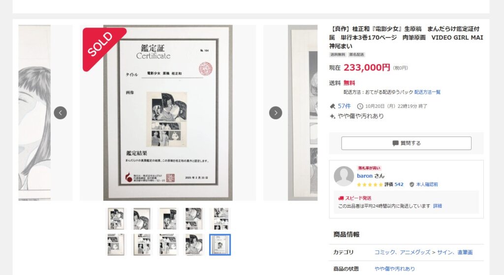 Este noviembre, en la plataforma de subastas Yahoo! Auctions Japan comenzaron a aparecer numerosas páginas originales de “Video Girl Ai”, que se vendían de forma continuada por precios que iban desde unos pocos cientos de miles de yenes por pieza hasta más de un millón en algunos casos. Diversos analistas y medios especializados han estimado que, tomando un valor medio de unos 300.000 yenes por página, el perjuicio económico total podría llegar a los 7.500 millones de yenes si se confirma la cantidad de páginas estimada. Para Katsura, se trata no solo de un daño económico sino también emocional, ya que ha señalado que son páginas realizadas “con el esfuerzo de toda una vida” y que no contempla la posibilidad de que fueran destruidas por error o desechadas por descuido.
