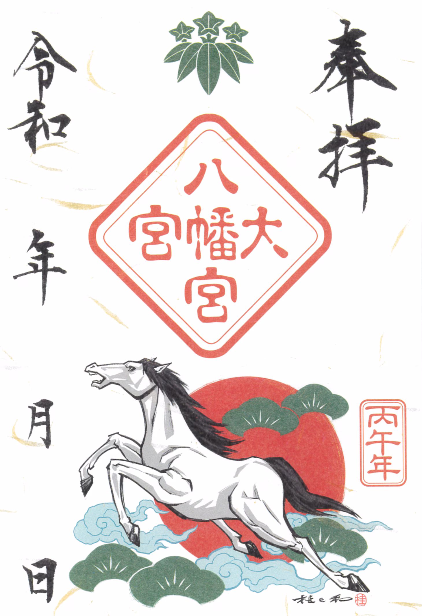 Katsura ilustra una ema especial para Ōmiya Hachimangū (Tokio) en Año Nuevo